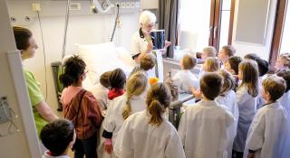 Zoveel kinderen rondleiden vergt een grote logistieke inspanning van het ziekenhuis. Maar gelukkig zijn er steevast enkele vrijwilligers die zich extra hard inzetten om de kinderen op een speelse manier kennis te laten maken met de medische wereld. Juf Nanou Van den Eynde van de Sint-Elisabethschool in Zoersel getuigt: "Dit is echt een mooi initiatief van het ziekenhuis. Het is een fijne en leerrijke activiteit voor de kinderen. Ze worden actief betrokken bij de rondleiding. Een doktersjas mogen aandoen was al een heel avontuur. Luisteren met een stethoscoop, wondjes verzorgen, ... ze voelden zich een echte dokter. Ze weten nu wat er allemaal gebeurt als ze eens in een ziekenhuis terechtkomen. Hopelijk zijn ze daardoor minder bang."